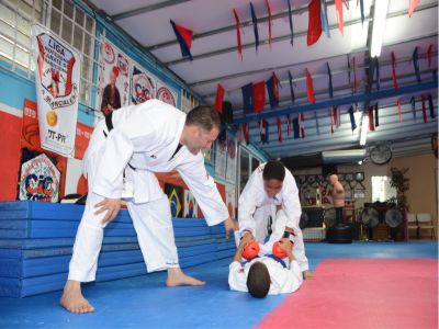 3) Los sábados el programa está estructurado para que los estudiantes reciban una clase dirigida exclusiva y únicamente a la defensa personal del individuo, en esta clase nos enfocamos exclusivamente en técnicas específicas para la defensa personal, las cuales cubren las cuatro áreas de la defensa como son técnicas para combates de pie, segundo técnicas para llevar al oponente al suelo con uso de tiradas, cuarto cuando lo llevamos al suelo como controlarlo en el suelo y por ultimo técnicas de sumisiones que terminan de neutralizar al oponente.