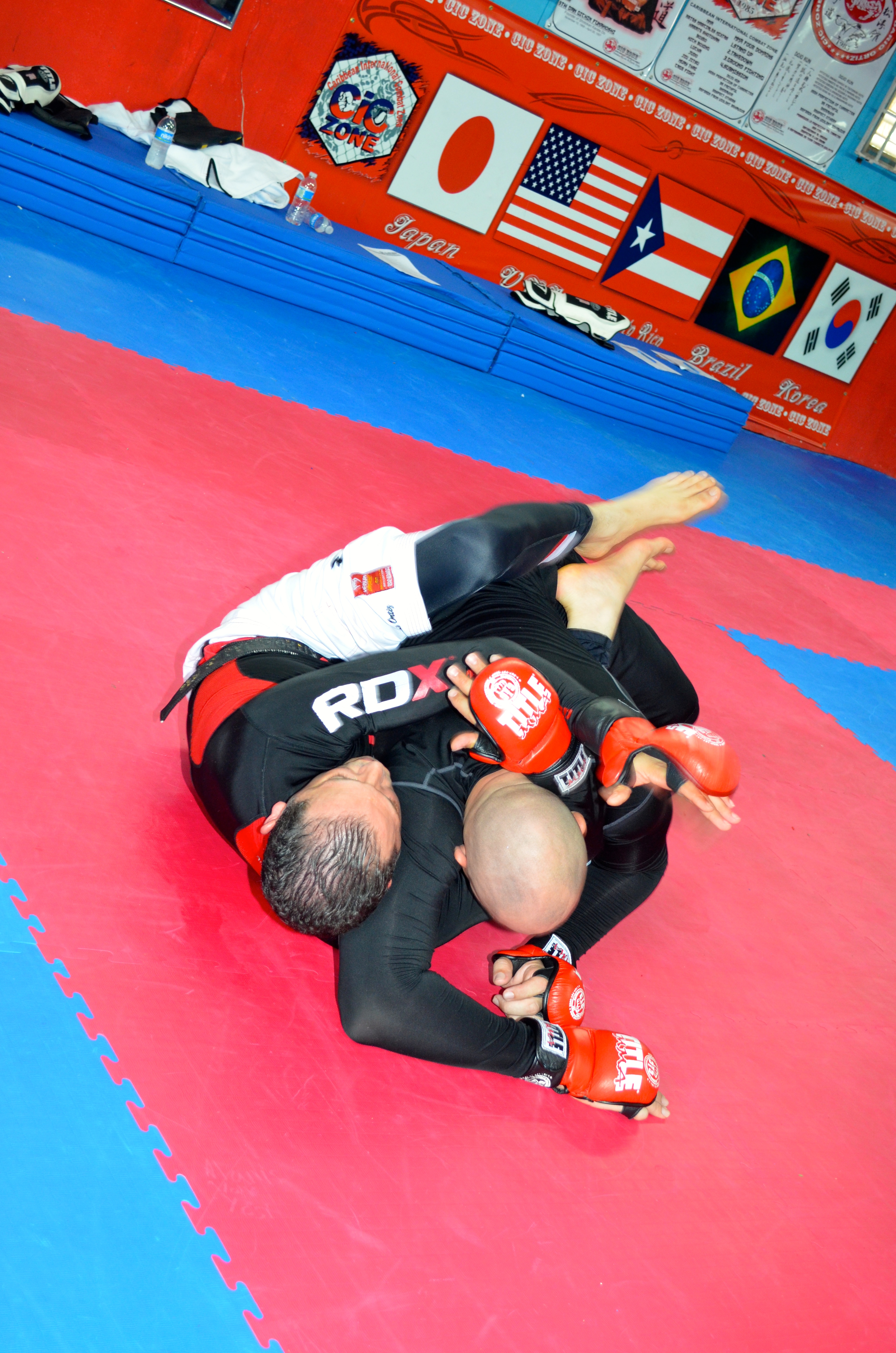 En nuestro programa el participante comienza con un cinturón blanco y va avanzando de cinturones, esto según va dominando los diferentes ciclos de aprendizajes del programa, el programa está dividido en nueve ciclos y cada uno de los ciclos cubre ciertas artes marciales necesarias para poder desarrollarse en este deporte, nuestro programa no es un programa exclusivamente de Brazilian jiu-jitsu, por el contrario si es un programa que incluye una gran gama de arte marciales que comprenden el deporte del MMA, entre las artes que cubrimos dentro de nuestro programa está, El Karate-Do, El Boxeo o Broiling, El Kickboxing, El Brazilian jiu-jitsu, El Judo, La Lucha Greco Romana, El Muay Thai y por último la pelea en jaula. De esta disciplina se trabajan solo las técnicas aplicables al deporte de MMA y se limita solo a unas técnicas especificas avanzadas o básicas necesarias para poder dominar el combate de jaula, por lo que no se enseñan como artes marciales individuales, por lo que no entramos en la profundidad de cada una de ellas, pero trabajando y tocando lo suficiente de cada una de ellas que causen que el estudiante despierte una inquietud y de así querer lo poder entonces más adelante integrarse a un programa de formación de dicha disciplina y alcanzar un entendimiento de la misma más profundo, es la meta de nuestro programa el que el participante desarrolle las herramientas más importante de cada una de las artes trabajadas, para poderlas implementar dentro de tu sistema de pelea en el deporte de las artes marciales mixtas.